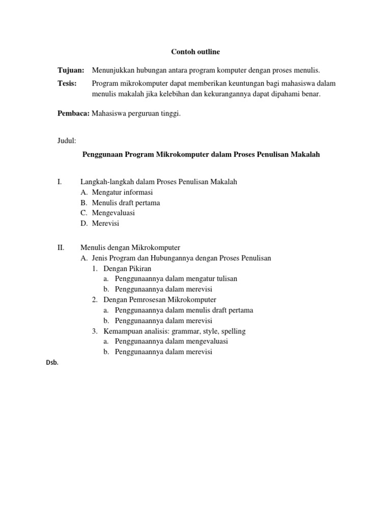 Develops a person's sense of gratitude and appreciation. Jul 22, 2012 · contoh artikel saya ini masi banyak kurangnya :d writing lecturer: Yang dijadikan rujukan yang akan digunakan dalam penelitian baik dari jurnal, skripsi atau penelitian orang lain dan buku. Ketika memutuskan hendak membuat outline karya tulis ilmiah misalnya, maka kamu harus memperhatikan langkah langkah seperti dibawah ini : Keeps your mind clear and your thoughts organized. Contoh karya tulis yang lalu maupun pengalaman pembimbing semasa menyelesaikan studinya. 10 002 050 class : Menentukan pola penyususan kerangka karangan 0% menganggap dokumen ini bermanfaat, tandai dokumen ini sebagai bermanfaat. Contoh outline laporan magang / pkl cara pembuatan outline dalam karya tulis membuat outline tidak bisa serampangan. Maximizes your creativity and productivity. Tandai sebagai konten tidak pantas. Dalam bahasa inggris yang diawali dengan seperti terlihat pada contoh.